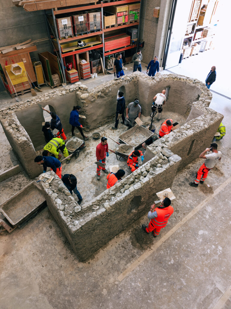 Cette formation, mêlant théorie et pratique, comprend la construction d’un petit bâtiment, l’application de crépis et de peintures à la chaux, ainsi que la réalisation de décors peints.