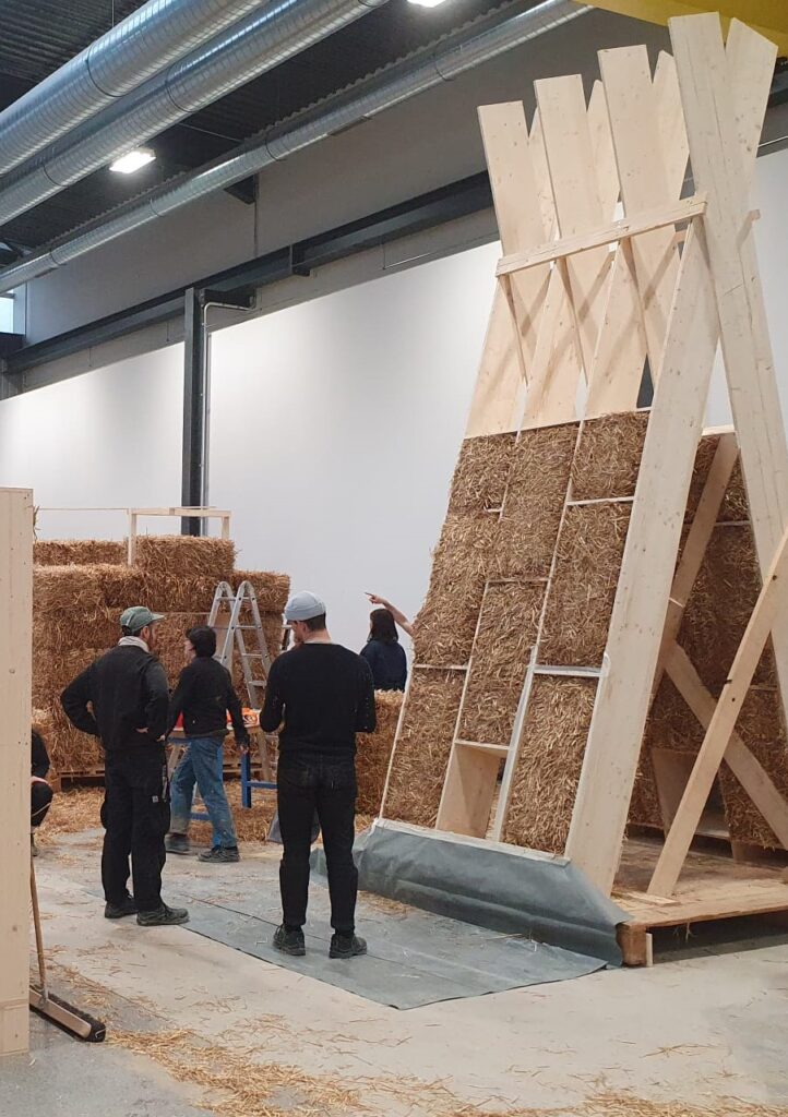 Celle-ci se compose d’une première partie théorique sur les caractéristiques de la paille, les systèmes de construction et leur impact sur la performance énergétique des bâtiments, suivie d’une partie pratique où les participants construisent une maquette à taille réelle d’un mur isolé en bottes de paille.